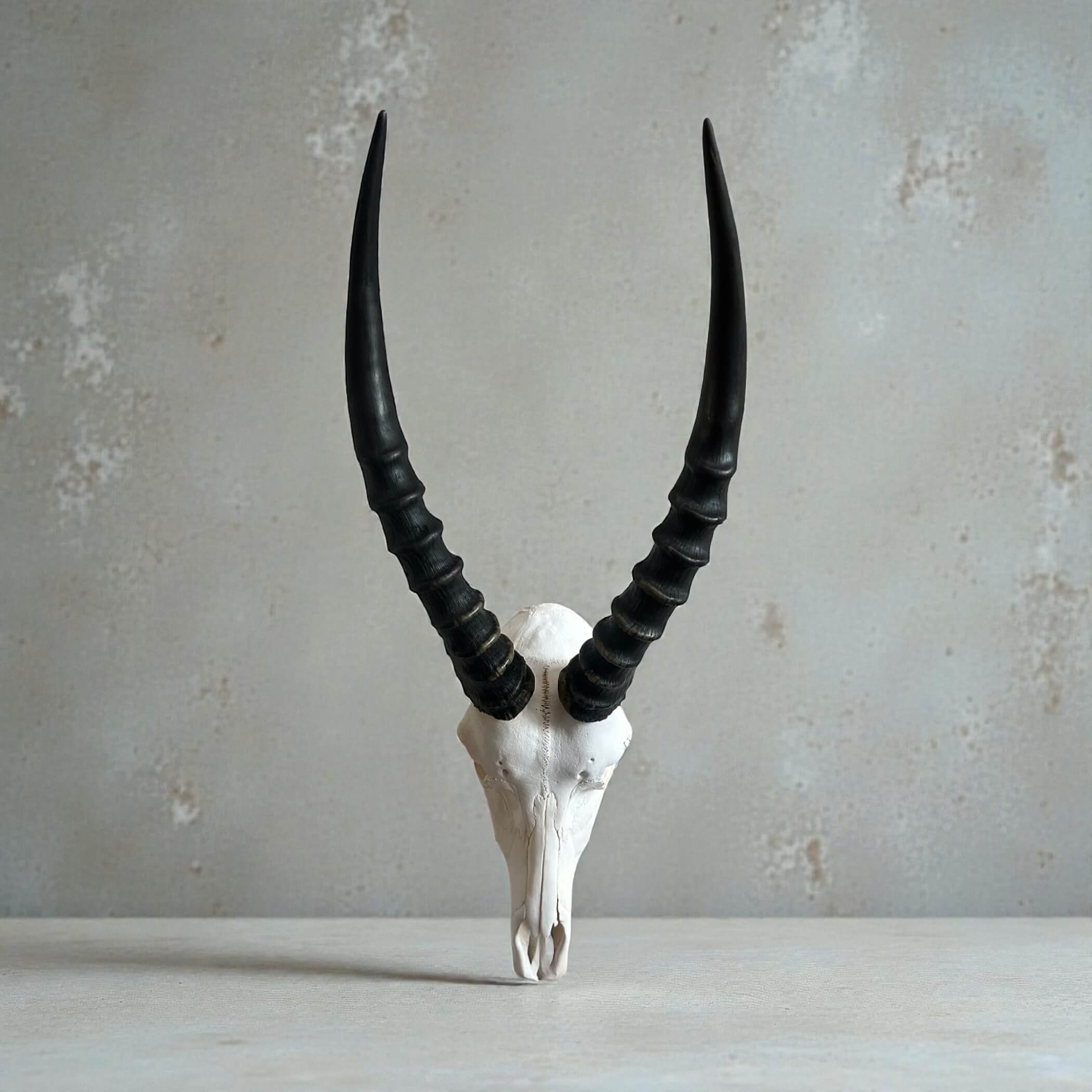 Authentic blesbok skull, professionally cleaned and prepared for décor or display. Tag No: 843. Size: 220x550mm. Ideal for rustic interiors or African-inspired styling.