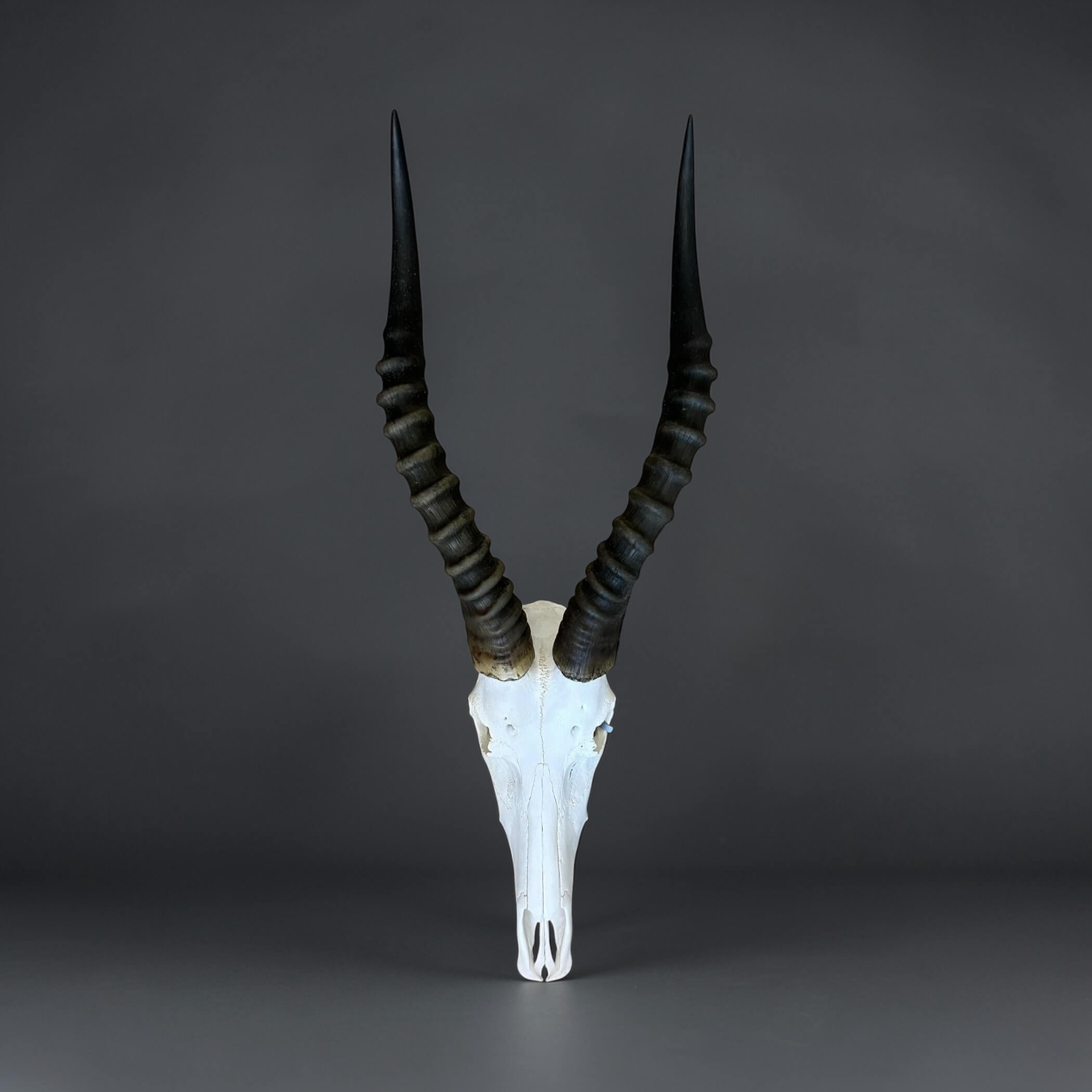 Authentic blesbok skull professionally cleaned and prepared for d?cor or collectors. Tag No: 854. Size: 620x230mm.