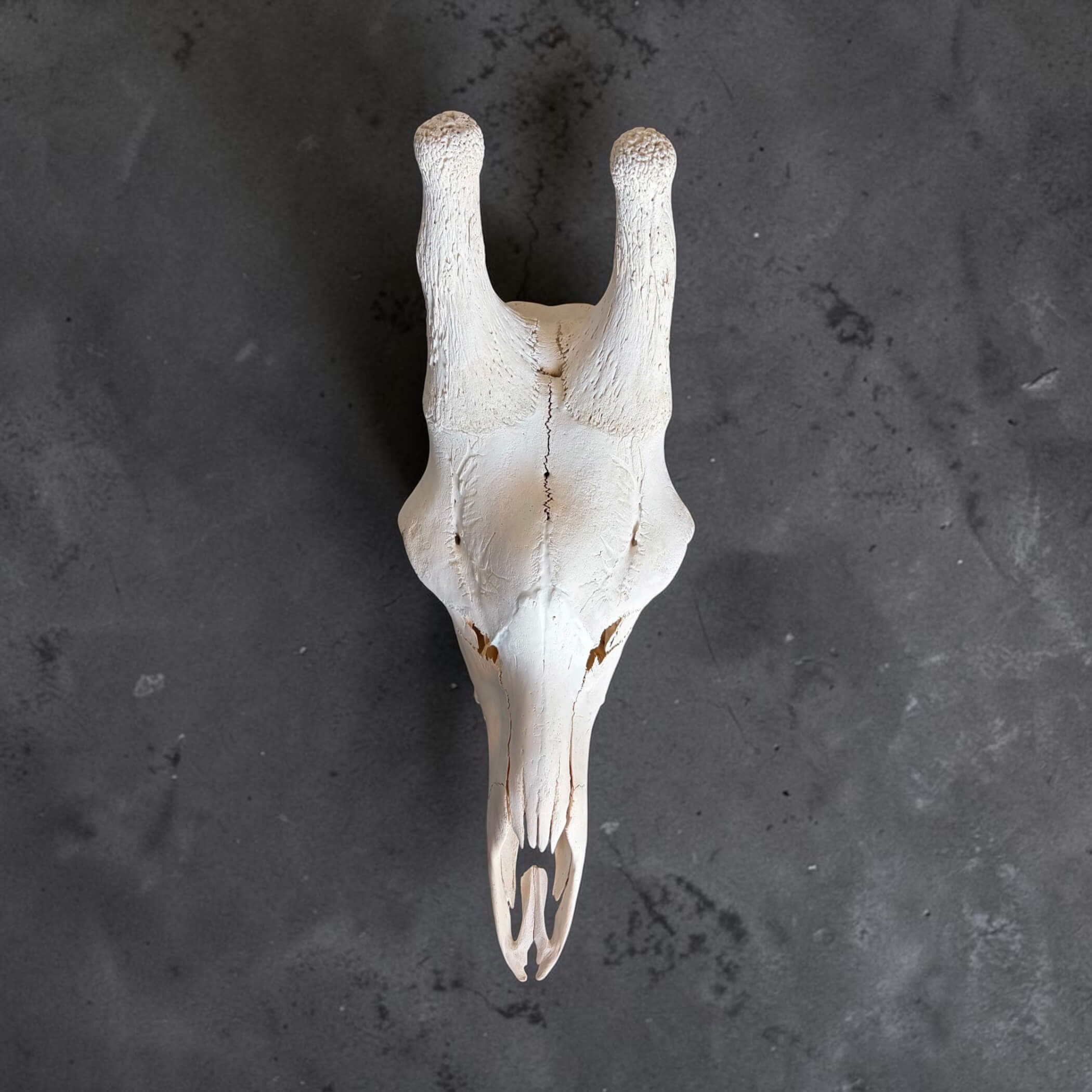 Authentic giraffe skull, professionally cleaned and prepared for decor or display. Tag No: 100. Size: 670x270mm. A striking piece for rustic interiors, lodges, collectors, and African-inspired styling.