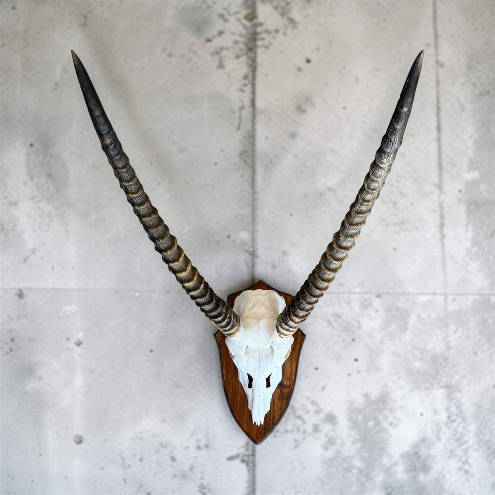 Authentic waterbok skull on shield, professionally cleaned and prepared for decor or display. Tag No: 103. Size: 550x550mm. A striking piece for rustic interiors, lodges, collectors, and African-inspired styling.